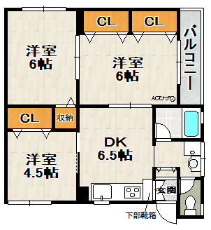 DK 6.5帖/洋室 6.0帖/洋室 4.5帖/洋室 6.0帖 - 向き