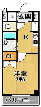 【7帖の少し広め1K!収納力ありのクローゼット付です】