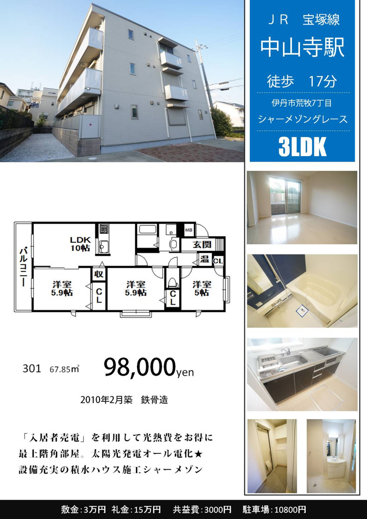 2010年2月築のシャーメゾングレースが仲介手数料無料キャンペーン対象になりました!