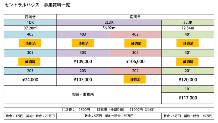 セントラルハウスの募集状況一覧ページを見ることができます。